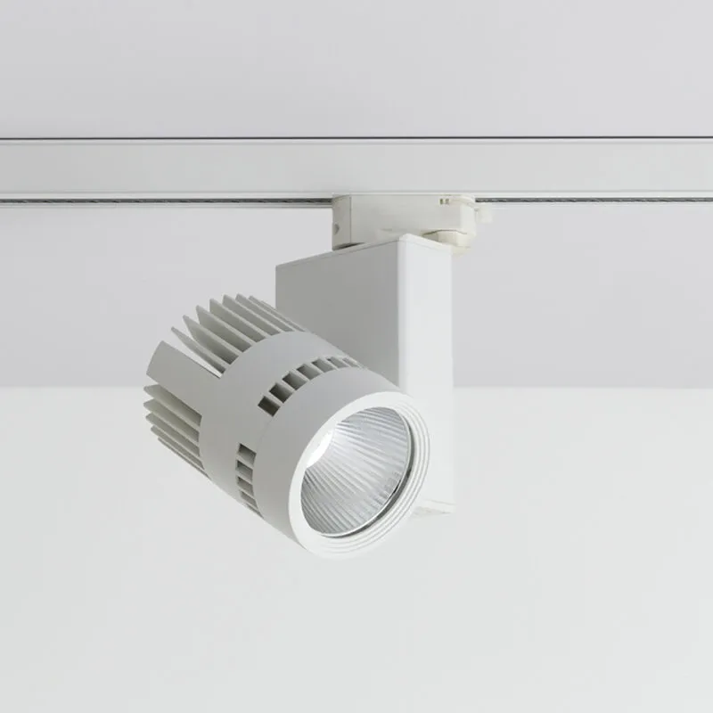 Proiettore da binario elettrificato trifase, orientabile sui due assi, completo di sorgente luminosa a LED ad alta efficienza a tecnologia Chip On Board. L’apparecchio è realizzato in alluminio verniciato a polvere epossipoliestere stabilizzata ai raggi UV, dotato di parabola in alluminio (36°), di vetro trasparente e di adattatore elettrificato. Disponibili a richiesta parabola con fascio di 15°, 24° e 60° e base per applicazione a parete/plafone con innesto per adattatore. Il grado di protezione contro la penetrazione di polvere, corpi solidi e liquidi è IP20.